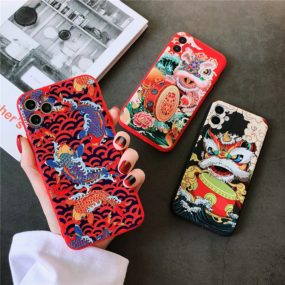 Chinese Style Lucky Carp Lion Dance Kirin Phone Case For Iphone 7 8 Plus Se 12 11 Pro X Xs Max Xr China Cool Soft Relief Cover Phone Case Covers Aliexpress