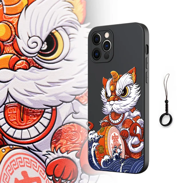 Great Emboss Lion Dance Phone Case For Iphone 13 Pro Max Mini Cover 3d Relief Case 12promax 11promax Xsmax Phone Case Covers Aliexpress